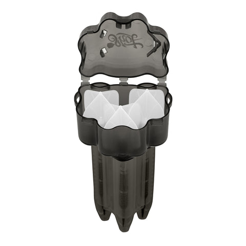 The Drop-In extendable Dart Case suits both steel and soft tip darts and holds one set of 3 fully assembled darts, ready for play. The flight storage area is highly protected by a stylish, form-fitting shell. Made from tough, high quality ABS plastic for high tensile strength and impact toughness, this case is height adjustable and drops in easily to any dart case set up. Carabiner clip included.