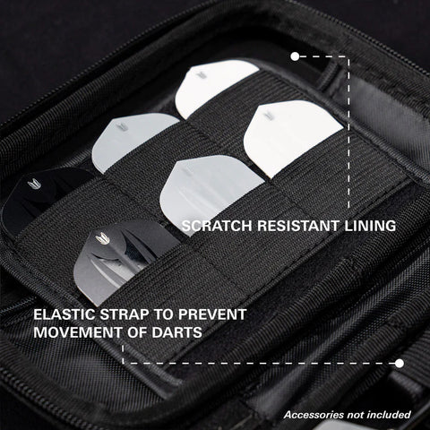 Constructed with a durable hard shell, the XL Takoma keeps your darts safe and protected. The scratch-resistant interior lining secures 6 fully assembled darts, with generous space for accessories including spare flights, shafts, Swiss Points, and your Swiss Point tool — delivering a premium blend of heritage, function, and design.
