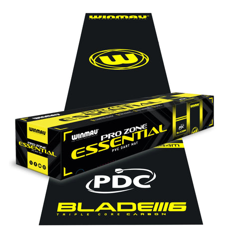 Professional quality dart mat made from durable PVC for enhanced performance and long-lasting use The Pro-Zone Essential mat features official tournament oche measurements to help improve accuracy and consistency.  Lightweight yet tough, ideal for both home and club environments.   Helps protect floors and marks a consistent throw line for every game.