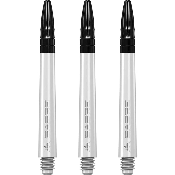 The Mission Sabre Dart Shafts combine the lightness and strength of polycarbonate with the flight-grip of Aluminium shafts. The Sabre shafts are made from a strong Polycarbonate material, encasing an Aluminium core and fixed top. The Aluminium tops enhance the grip of the flight and are available in multiple. Mission Sabre shafts are constructed from tough, durable, highly compatible polycarbonate. The tip however is made of aluminium making for a stronger and tighter grip for your flights. This combination assures a superb grip between the Sabre shaft and the flight. Each individual shaft is signed and stamped with the Mission logo and 'Sabre'. Thread: 2ba.